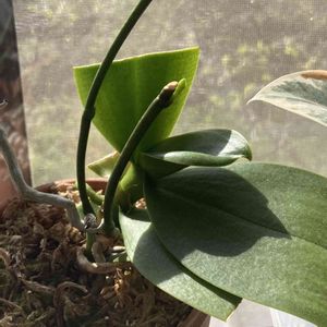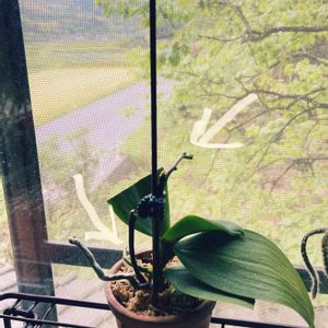 まさかの花芽が出てきたため、花期後に一旦はずしておいた棒とクリップを装着。よもやこの棒を使う時が来るとは…。万に1つもないだろうと思ってた。 2つ目の花芽は引っかけてしまい脱落😭 茎から直接出てきた花芽らしきものも有。現在トータル2本。 (明度を調整してます)