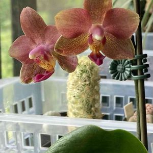胡蝶蘭チョコレートドロップス(カオダトゥインクル) Phal. Kaoda Twinkle 'Chocolate Drop' (P. schilleriana x P. Malvarosa Valentine Pearl 数は少ないけど、 今年も咲いてくれました。 ミディだけどぽってり重厚な、 季節なら秋が似合いそうなお花。