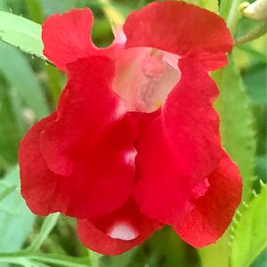 鳳 仙 花 花言葉 心を開く お庭の雑草取り中に見つけた 赤い花…それは 種から植えた鳳仙花❣️ 最初の花を付けました🌺