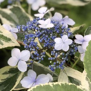 白い斑入り葉のアジサイ 咲いてました✨ 涼しげな葉っぱが綺麗です🍀
