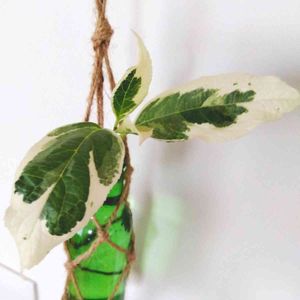 ダメ元実験。 実家の庭植え紫陽花(斑入)を一枝チョッキン✂ ドラセナの水挿ししていた瓶が空いて寂しかったのでin🌱𓂃 𓈒𓏸 時期じゃないし、花芽の付いてない枝なので本当にダメ元(笑)