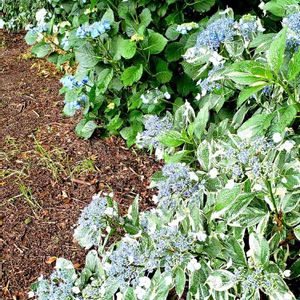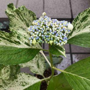 先週、投稿した斑入りアジサイ。 アジサイの観察日記みたいになってきていますが… ( ̄▽ ̄;) 蕾?の感じから、白い花が咲くと思いきや、うっすらとブルーの入った可愛らしい花が咲いてくれました😊
