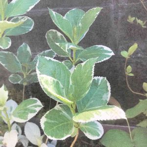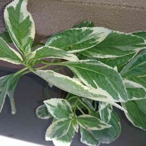 斑入りのアジサイ レモン🍋カラーです💕 この子も長老です! お花は気が向いた時に咲かせてくれます… でもっ❣️葉っぱが綺麗なのでいいの💕