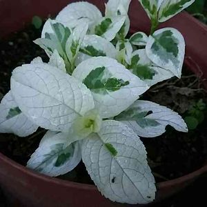 今年の新芽も白い部分が多いけど😅 他の鉢は葉っぱの縁だけ白いのね