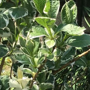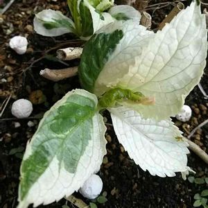 斑入りアジサイ あぜ道に植わっていました。 パイナップルミントの横にあったので、すぐそばのお家の方が植えたのだと思われます。 斑入り好きなんでしょう🤗💕 友人にもいます❣️ ね、くぅちゃん😁