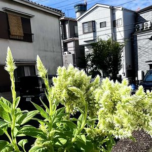 おはようございます♪ 昨夜も〜早朝まで28℃を下回らない熱帯夜でしたが、現在27℃に少し下がり、エアコン止めて、空気の入れ替えしてます😊 ① 6月初めにHCからお迎えした、ケイトウの仲間ケロスファイアは、猛暑に負けずとても元気です٩( ᐛ )و ライムグリーンの花穂がどんどん増えて 重さでもたげるので二度切り戻しましたが、またすぐワサワサに😅 ②クリーム色の花にライムグリーンの葉脈が広がる3〜5cmの小輪八重咲きペチュニアですが、暑さに強くて花保️ち良いです(o´∀︎`o) ③ 一年中、ソフトオレンジの小さな花を絶えず咲かせてるドリフトローズ・ピーチ ✻ฺ.‧ 葉焼けするので、玄関ドア脇にハンギングしてます ③ 昨年5月にお迎えしたケイトは、暑さで時々下葉を黄変させますが、毎日よく咲いてます(✻´ν`✻) 気温が少し低い時期には、淡い小豆🫘色で渋めですが、気温が高いと 青味がかって爽やかに(*˘ ᴗ ˘)=͟͟͞͞ ⑤ 半月前に、古い家屋を取り壊した空き地の前を通ったとき、外側のこぼれた土の上に3cm丈ほどの小さなペチュニアを見つけました。ピンク色の小さな枯れかかった花を付けて、持ち上げるとすっと取れました。深さ1cmにも満たない乾いた土がアスファルトの上に被さっただけの所に2cmくらいの根を生やしてたのですが、根はカラカラに乾いてました。 持ち帰って、花芽をカットして2号鉢に植えて、株元が乾かない様に空いてるハンギング鉢の中に入れて管理して無事に根付いて花も咲きました。 気温が落ち着いたら、鉢を大きくして植替えします ⸜( ´ ꒳ ` )⸝♡︎