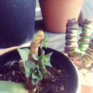 おはようございます🌞 sale品を購入して、すぐチョンパ✂️したデレンオリバーさん🎵 葉挿しは全滅してしまいましたが、こちらは元気に成長中💕 秋が楽しみだなぁ😊✨ 皆さん、こんな状態になった赤ちゃんって、もぎって別に植え替えますか? このまま楽しみますか?