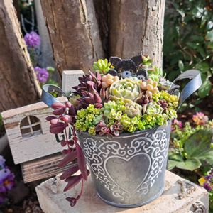 おはようございます 先週我が家で開催された Afternoon Succulent 『雨に濡れる紫陽花寄せ』 トリカラ-を紫陽花に見立てて チマチマ寄せで紫陽花を作りました とても可愛く仕上がっています リメ缶は善はるさん カタツムリはこっつんさんの作品です お二人のGSのお友達 ありがとうございました😊