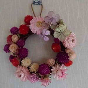 千日紅と貝殻草?と紫陽花でミニリースにしてみました🌸
