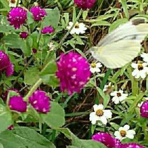 ちょっとあそんで(編集)✨ 千日紅とセリ科の…なんだっけ😄💦 千日紅は夏前に植えて ず~っと紅いなあ~💖 セリぼんずは いっとき毛虫のごちそうになって丸ハゲに…(。-∀-)💦 でも復活!