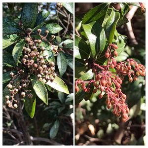 アセビの実と蕾 以前にも投稿しましたが、同じ株から古い枝(実)と新しい枝(蕾)があります