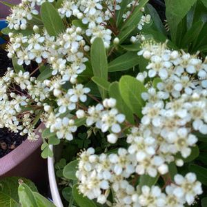 💠ピラカンサス💠 庭の鉢植え🪴で咲いています💕 この白い花が冬になると 真っ赤な🔴実が着きます🎶🤗 今から楽しみです♪♪♪😊