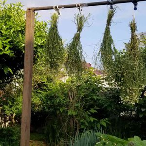 一昨日の良いお天気の内に鉄棒に干して良かったわ♪ 良い香りのカモニール♡