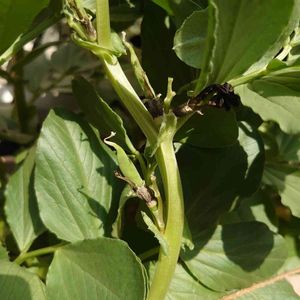 収穫期を迎えているそら豆ですが、病変がかなり進行しているものは除去してます。