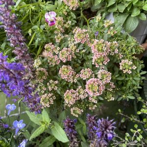 寄せ植えのアリッサムがかわいく咲いてます💕 春になって、ブロンズ色が薄くなって、ピンクになりました。 この色もいい感じ〜🥰