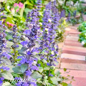 "アジュガ"通りが出来上がりましたぁ💕 4月3日の "ジュリアン"通りは どこいった⁉️ まだ咲いてるんだけどね、 まわりが大きくなったので 見えなくなっちゃった💦