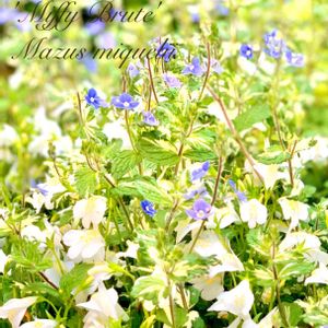 サギゴケが真っ白になってきましたぁ💕 その間からブルーの小花がニョキッ😁 "ベロニカ ミッフィーブルート"💙 葉っぱも斑入りなので眩しいくらい 明るい場所になりました🥰🎶