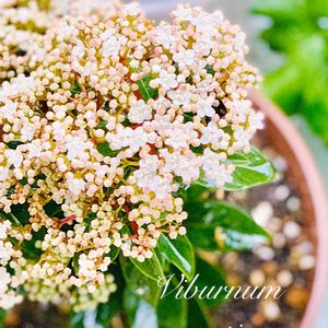 ちっちゃなツボミが開いてきたみたい💕 "ビバーナム ティヌス" 今年初のコです‼️ ただいま鉢植えです。 地植えにしたらどのくらい 大きくなるのかな〜💕 植える場所、悩み中で〜す😊