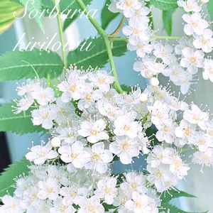 大きくなりました‼️ 何かわからずいただいて3年目 2回目の花が咲き始めました💕 真っ白な小さな花のかたまりの "ニワナナカマド" 調べたら樹高10m💦⁉️ 小さな庭に植えていいのだろうか⁉️怖いなあ😅