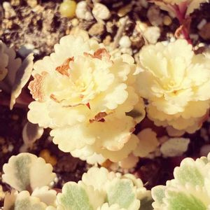 お久しぶりです😊 母の育てているフランネルフラワーとアトランティスを並べてみました 色味の似ている二人が並ぶと可愛いですね(*´ω`*) アトランティス-25度まで耐えるらしいですよΣ(゚ω゚ノ)ノ