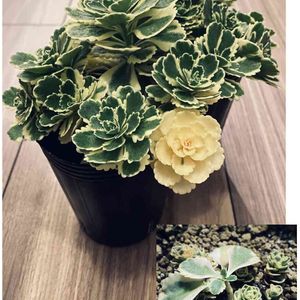 こんにちは(๑>◡<๑) 🏷錦の日参加させて頂きます💕 昨日お迎えした胡蝶の舞錦と斑入りミセバヤ💗 そして、かおりんさんから頂いた🎁アトランティス💖下から沢山新芽が出てきてます❣️ 斑入りを見る👀と、 やはり欲しくなってしまいます🤣