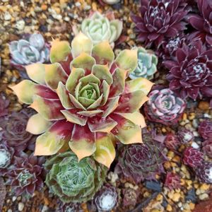とっても久しぶりの投稿です。 東北の寒さに慣れてきた多肉たち。 昨年末に買った多肉ちゃんと鉢植えを使い寄せ植えをつくりました💦 お待たせしたのでまだ紅葉しております。 ピックを初めて買ったので挿してみました!🐛のうりうりに合わせてクラッスラを揃えてみました❤️