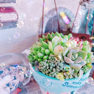 ( *ˊᗜˋ)ノこんにちはꕤ*.゚ 毎日暑すぎるので🥵☀️爽やかなシャボン玉鉢の寄せ植え〜𓂃𓋪◌。💙◌⑅⃝🌐 今日は36℃予報〜☀️☀️☀️ しっかり水分塩分を摂って熱中症に気をつけましょう〜🍀 無理は禁物⚠️(乂'ω')!!