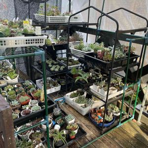 はぁ…💦 暑くて長時間は外にいられない💦💦 遠くで雷鳴ってるし(泣) 何とか土を被ったアガベを洗って 土に埋もれたエケちゃんを救出して 備え付けの棚のポールを外してミニ温室の棚を置いたら窮屈そう…だけど、ある程度重さがないと落下しまくるし…😞😞😞 難しいですな💧 とりあえず明日植え替えしたら完了としましょう😅 片付けながら✂️したセンペルさんの花が咲いてるのを見つけて癒されました❤️