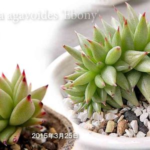 エケベリアのアガボイデス・エボニー綴化「鯱」。8月にかなり萎れてしまってどうなることかとひやひやしました。同じ時期に綴化のムーンガドニスやシャイニングパールがやられてしまったので、大事を取って水を控えて一か月。最近ちょっとずつ水をやっていたら復活! よかった!