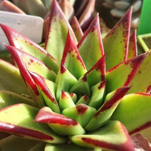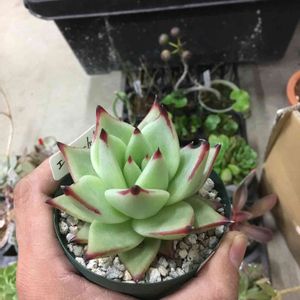 エケベリアのエボニー綴化。夏場は葉っぱが伸びたりして形が崩れるエケベリアだけど、これはアガボイデスだけあって夏場も形がきれい。日向で頑張らせ過ぎて水不足……葉っぱがしわしわになってしまった。水をやらねば。でも、ヘタにやって蒸れると困るんだよなあ。