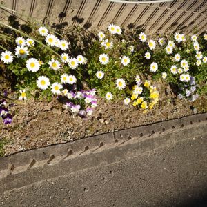 昨年、近所の保育園のバザーでビオラと「何かわからん苗」が売っていたので購入してみました。 ビオラは5つ購入して5つとも色が違った! 「何かわからん苗」は白いかわいい花が咲きました! マーガレットかな?