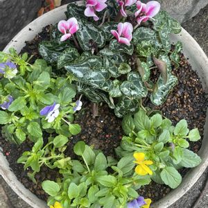 おはようございます😃 ビオラとガーデンシクラメンの寄植えを作りました。来年の春まで、咲き続ける、花達です。