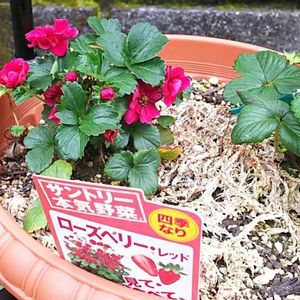 赤花が増えて来た ローズベリーレッド🍓 隣は白イチゴです