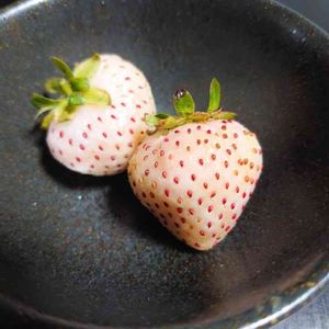 白イチゴ初収穫🎶 ちょっと早まりましたね💧 種は大部分赤いですが、 実に青みが残ってました。 娘的にはこのくらい甘酸っぱいのが好き💕だそうです。 ちょっとだけかじらせてもらったら青リンゴのような香りと酸味で確かに悪くなかったです☺