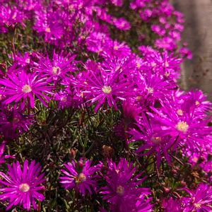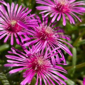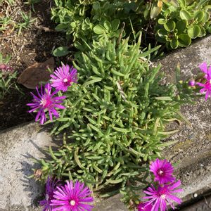 マツバギク ピンクのマツバギクを見る機会が多いのですが、白も素敵ですね。 葉っぱがすこし多肉質で、春~初夏に鮮やかな赤や紫の花を咲かせます。 種が多く、メセン類のランプランサス属(Lampranthus)、花色が豊富な交配種のスペクタビリス種(L. spectabilis)(半耐寒性常緑種)、耐寒性の強いデロスペルマ属(Delosperma)などがあります。 園芸店で出回るのはほとんどがスペクタビリス種が多いですが、最近では耐寒性の強いデロスペルマ属の「耐寒マツバギク:砂漠の宝石」などの園芸種も流通するようになりました。(ネットより)