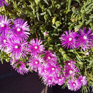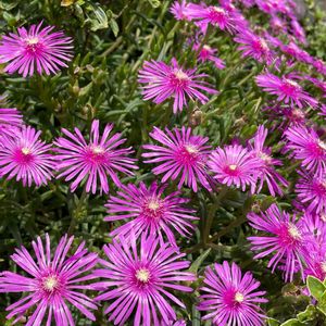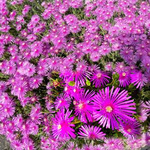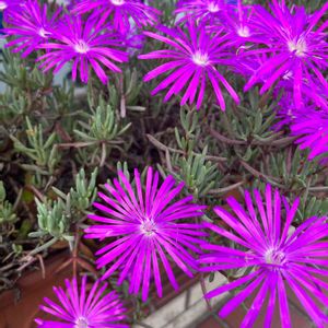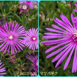 あはようございます☀️ 散歩で出会うマツバギク🌸 調べると開花期が4〜5月のランプランサス属と、6〜10月のデロスぺルマ属があるのですね こちらは今咲いているので耐寒性のあるデロスぺルマ属になります 花色も赤、紫、ピンク、白、黄、オレンジがあるようです 趣味の園芸参照
