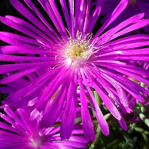 おはようございます😊 マツバギク ハマミズナ科 多年草 花言葉「心広い愛情、忍耐」 開花期 4~8月頃 散歩🚶♀️で出会った綺麗なお花。日中晴れた時は開花してます💖 ☔、☁️、夜間は花は開いてません。 お天気が良い日に出会い良かったです💖😍