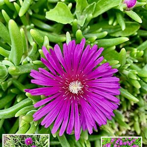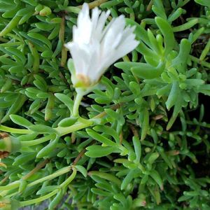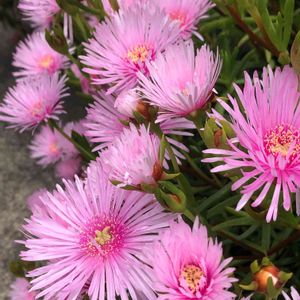 5月は皐月。緑が映える季節に、私の散歩道の道際等の草花達は、まさに百花繚乱の時季に包まれているようである--- 4月からの、草花達の嬉々とした姿、姿---その31。 色鮮やかに、地を這う松葉の中に咲く花。 ---今時分の散歩道の道際。濃い緑の、幾多の細い線状葉の中に、美しく光沢を持った赤ピンク花が輝いている。 この草花は、主役というより各家々の、植栽の引き立て役のグランドカバーの他、石垣の上やロックガーデンにも似つかわしく、利用されているようだ。 同じような葉を持つマツバボタン(スベリヒユ科)。このマツバギクとは異種だが、その同じような様態に、私の郷愁を憶える草花の一つである。 ・マツバギク<松葉菊>(ハナミズキ科 ランプランサス属/デロスペルマ属) 南アフリカを中心に約180種が分布する多年草。 その大半は南アフリカの乾燥地帯を中心に分布しており、カラフルな美しい花を咲かせる。 マツバギクとして流通しているのはこれらの中から数種を交配させた交配種である。 本来「マツバギク」というとこのハマミズナ科ランプランサス属の植物の総称であるが、同科で草姿や性質が似ているデロスペルマ属の植物もマツバギクとして流通している。 主に流通するのは南アフリカに分布するデロスペルマ・クーペリー種で、寒さに弱いランプランサス属の植物に比べて耐寒性が高いため、「耐寒マツバギク」とも呼ばれている。 最近では耐寒性の高いデロスペルマ系の方が主流となりつつある。 花期は系統によって異なり、ランプランサス系が4月~5月、デロスペルマ系が6月~10月。 花期になると、分枝した茎の葉の付け根から花柄を伸ばし、花径3~5㎝程度の花を咲かせる。 花は菊の花に似ているが、集合花ではない。 花弁のように見えるのは、雄しべが変化した仮雄蕊(カユウズイ)と呼ばれるもので、細い線状になっており、美しい光沢を持つ。 中央には3~5本の雌しべがあり、その周りを多数の雄しべが囲む。 花色はピンク、赤、オレンジ、黄、白、紫。 花は夜になると閉じ、長い花期の間次々と開花する。 葉は多肉質で品種により棒状のもの、やや幅のあるものなどがある。 茎はよく分枝し地面を這うように広がって、株は密に茂る。 デロスペルマ系は耐寒性があり、かなりの寒さにも耐えることが出来る。どちらの品種も暑さに強く、病害虫もあまり発生しない。 乾燥に強く、育てやすい植物である。 グランドカバーの他、石垣の上やロックガーデンにもよく利用される。 <マツバギクの品種> →デロスペルマ・クーペリー 南アフリカ中部のやや標高の高い地域に分布しており、耐寒性が高いのが特徴。マツバギクとして流通する品種の中で最もポピュラーで、緑化植物としてもよく利用されている。 「耐寒マツバギク」「レイコウ(麗晃)」の名前で流通することもある。 →ムーンストーン デロスペルマ系の品種で、白く輝くような花が美しい品種。 →ランプランサス系 ランプランサス属の植物を交配した品種群。赤やオレンジ、黄色、ピンク、白など多彩な花色が揃う。品種名は特に付けれらていないものが多い。 耐寒性はあまり高くないが、暖地であれば霜に注意して戸外いで冬越しが可能。 <マツバギクの仲間> マツバギクが属するハマミズナ科は、亜熱帯地域を中心に約1800種が分布する。観賞用として栽培される種は多くはないが、本種の他、以下のようなものがある。 →リビングリストンデージー →ベビーサンローズ(ハナツルソウ)9 同じように多肉質の葉を持ち、名前が似ていることからマツバボタンとよく混同されるが、マツバボタンはスベリヒユ科の植物で、マツバギクとは科が違う。 (出典・参考: ガーデニングの図鑑 )