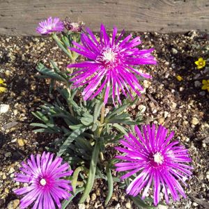 今日のお花 マツバギク 道路脇の花壇に咲いていました。 R2.12.16 撮影午前 原産地 南アフリカ 別名 松葉菊(マツバギク) 仙人掌(サボテンギク)