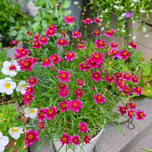 深い色合いになってきたコレオプシス♥️ 白いペチュニアはポツポツと🤍 もう少しこのまま楽しもうと思います☺️