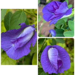 待望の八重咲バタフライピーが開花中💙💜 なかなか咲かないので心配してましたが💬🦋 蒸し暑さがゆらぐと次々に青紫のフリルを魅せてますリʓ バタフライピー ( 蝶豆 ) は𓈒𓂂𓏸🦋🫘 熱帯アジア産のマメ科つる性非耐寒性一年草🌿.∘ 稀に白い花を咲かせることがあるようですねー🤍 お花はエディブルフラワー ( 食用花 ) として利用😋 レモンを加えてハーブティーを楽しみたいです🍋🫖