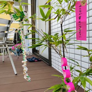 明日七月七日は七夕🎋 鉢植えの黒竹の笹に七夕飾りをしました😊 みんなが幸せになるように🙏 お天気の様なので夜空を見上げてみようと思います^_^ いつも見てくださりありがとうございます😊