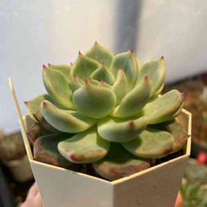 おはようございます😃 最低6℃・最高19℃予報🌸 昨日の夜から強風で朝5時に風で目が覚め 二度寝😪 パッと起きたら寝坊で大慌て💦 おらいさん苗のももりん。 すっごくムッチリです❤️ 奥の夕波、成長点消えました💦 子吹きするかな❓ 今日も1日頑張りましょう✊✨