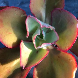 エケベリア クイーンカール クイーンなのに雨晒しでごめんね。 フチの色が美しいなぁ。 2019年11月