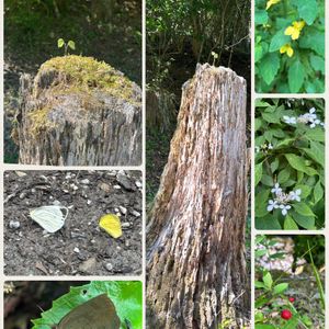 主人の趣味🦋のお供 朽ち木に芽を出した双葉🌱がジブリの世界のよう… 暑い日でした🥵