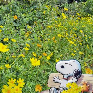 🏷毎月2日はスヌーピーの日 巨峰ワイナリー(福岡久留米市)にて ③−1 2025年8 月26日 ❶❷キバナコスモス 花が少ない中、キバナコスモスが沢山咲いていました。 🦋ツマグロヒョウモン ♂️ ฅ(・¨ (●)イラストはネット引用 ➌耳納連山中腹にある自然豊かな巨峰ワイナリーです。 収穫されたばかりのブドウ棚、日が差して緑がとても綺麗でした。 ❹薄暗い森の中にとても大きなサルスベリ ピンク色の花一際目立っていました。 ➎コブシのゴツゴツした実が沢山生っていました。 あの花からこんなゴツゴツの実になるのが不思議? (°__。) 🏷火曜ベンチにも参加差せて頂きます。