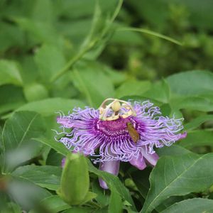 パッションフラワー ムラサキツバメ 共に南方のご出身 パッションフラワーはキリストの受難に擬えていて、子房柱が十字架、雌蕊が釘、葯が傷、花弁と萼で10使徒(12のはずだがユダとイエスを知らないと言ったペトロを外すのだとか)などなど、こじつけがすごい 時計草でも針が3本に (あっ1つは秒針か) そんなこんなで正面顔は苦手なのが判明しました ムラサキツバメは温暖化で関東に北上 表翅は見せてくれませんでした 成虫で越冬 しかも集団で越冬するらしい 尾状突起が特徴 初めて見た私は 翅に虫を挟んじゃったのかと思ったのでした