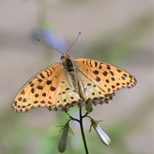 ツリガネニンジンで一休みの ツマグロヒョウモン❗