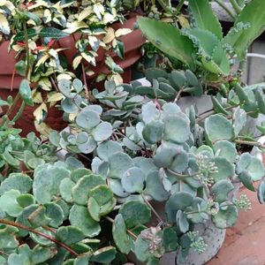 ベランダの越中ミセバヤと、♡葉のポポラス。 ニョキニョキ育ってます。 ミセバヤの鉢はセメントでハンドメイド🌸