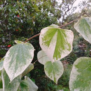 デンパークで見つけたこの白い葉 緑から真っ白に変化するようだ🤗 「君の名は」